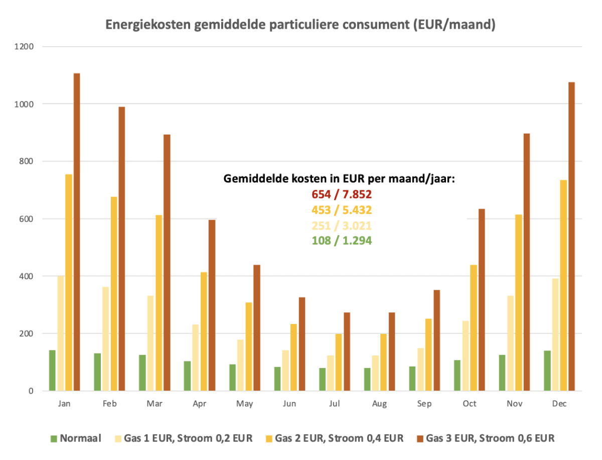 Dus voor iedereen waarvan het vaste contract afloopt, of de consumenten die een variabel contract hebben (en dat is meer dan de helft van Nederland), zullen de energiekosten enorm stijgen.